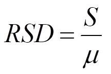 S is the samples standard deviation, it is not the actual standard deviation since only an estimation can be given from the samples. μ is the arithmetical average of the samples concentration, thus as well calculated from the samples.